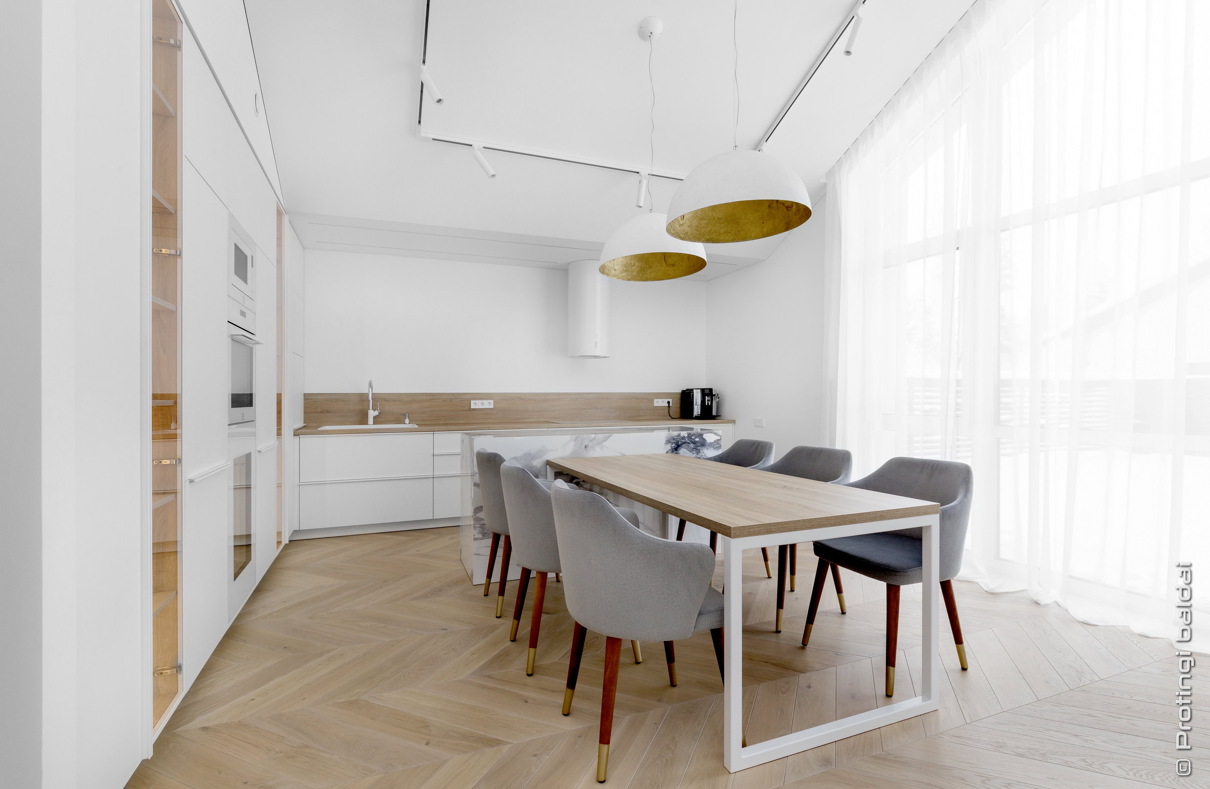 Privataus namo interjero sprendimai PB34: virtuvė, svetainė, vonia